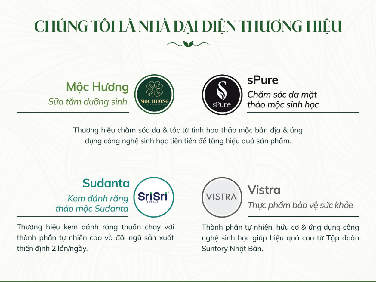 Vạn Mộc Mall tự hào là đơn vị phân phối và đại diện thương hiệu cho các nhãn hàng chăm sóc sức khỏe và làm đẹp theo hướng tự nhiên: