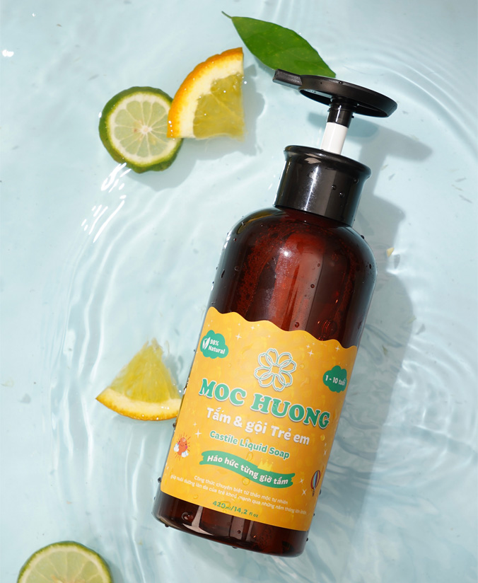 Gel Tắm & Gội Trẻ em 2 trong 1 Mộc Hương kết hợp tinh dầu Cam, Quýt và Chanh Trúc có nguồn gốc tự nhiên giúp làm sạch dịu nhẹ, giảm rôm sảy, mẩn ngứa và làm dịu vết côn trùng đốt. Công thức nhẹ lành, không chứa SLS/SLES, paraben hay silicon, giúp nuôi dưỡng da và tóc bé mềm mượt, khỏe mạnh mà vẫn an toàn cho làn da mỏng manh của bé yêu.